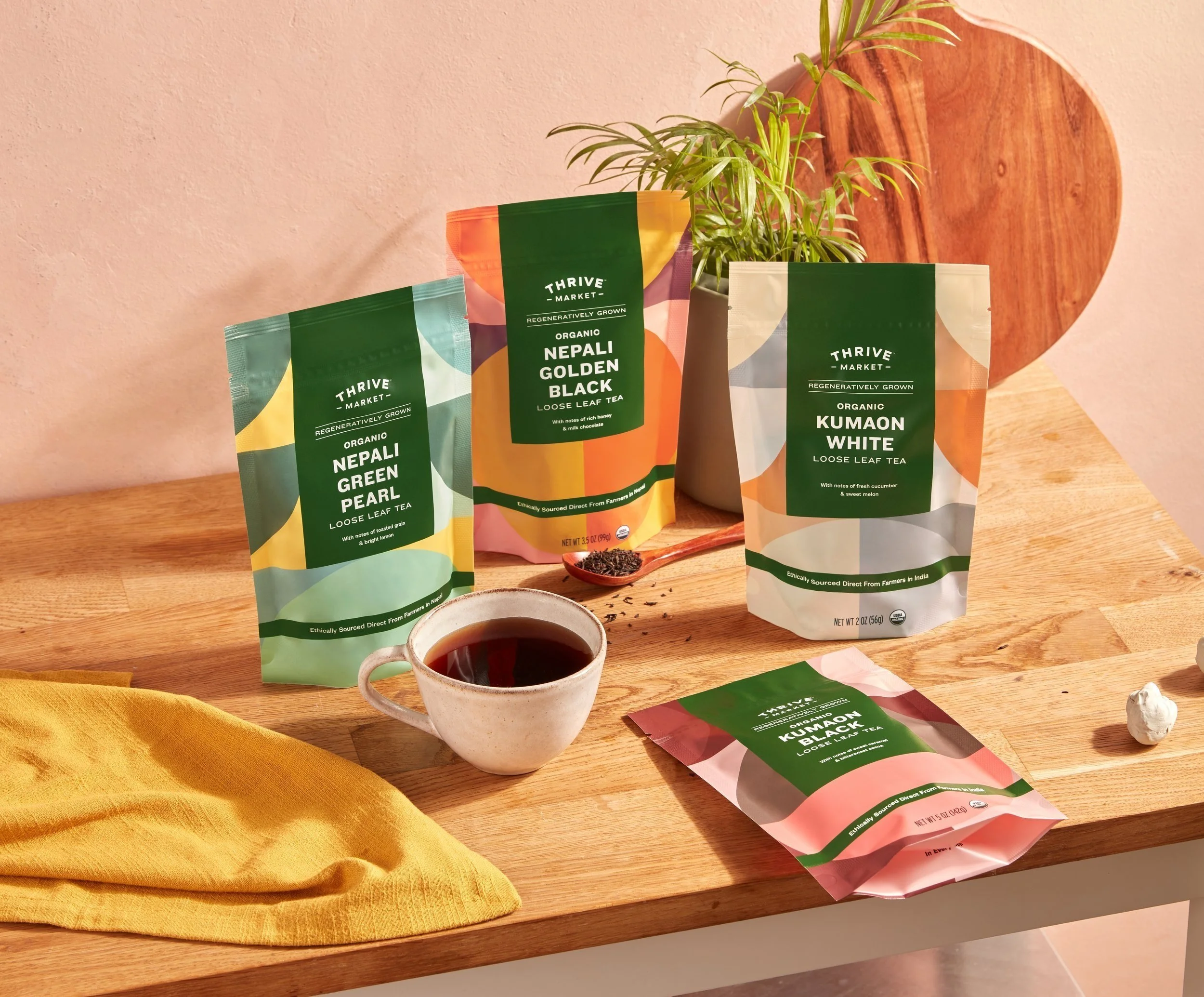 The inspiration for the Loose Tea Design came from the round tea cups from a bird's view. The circles create organic and dynamic shapes, pouring and flowing into one another. The color gradients mimic the changing color of a brewing tea. This combined with the elegant typography creating an elevated design that is giftable and irresistible.